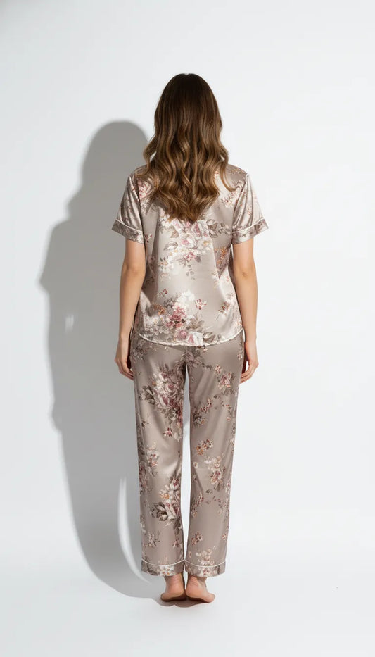 Bienvenue dans l'univers raffiné du pyjama satin beige, où élégance intemporelle et confort absolu se rencontrent pour transformer chaque instant en parenthèse de luxe.