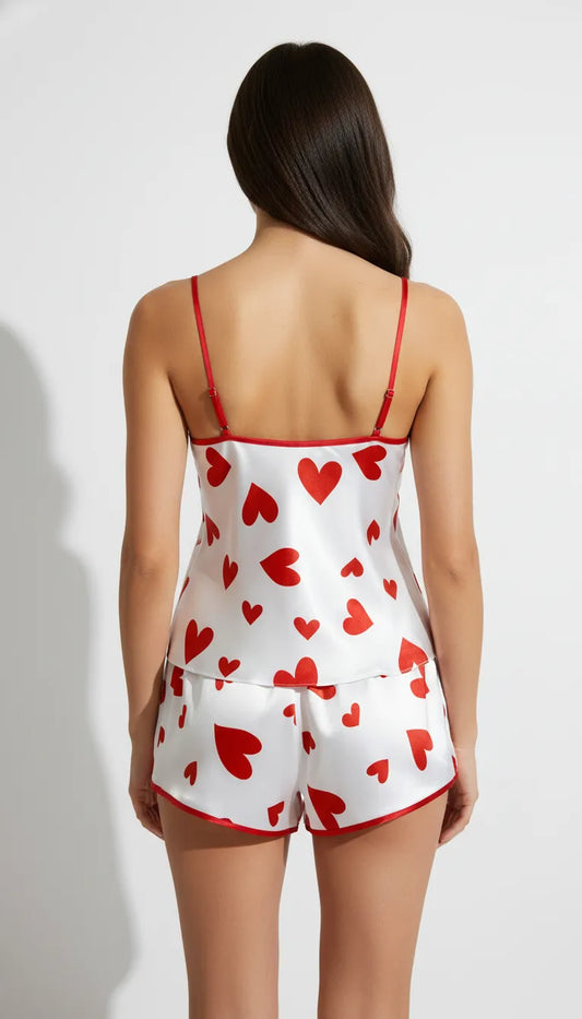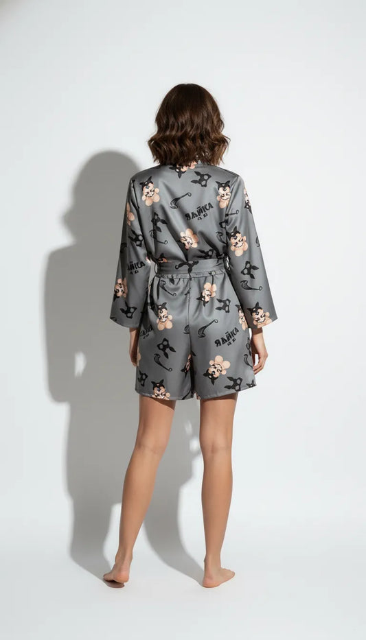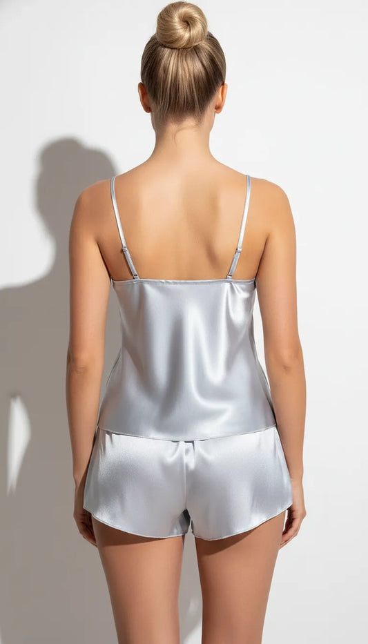 Pyjama court en satin gris (short et caraco)